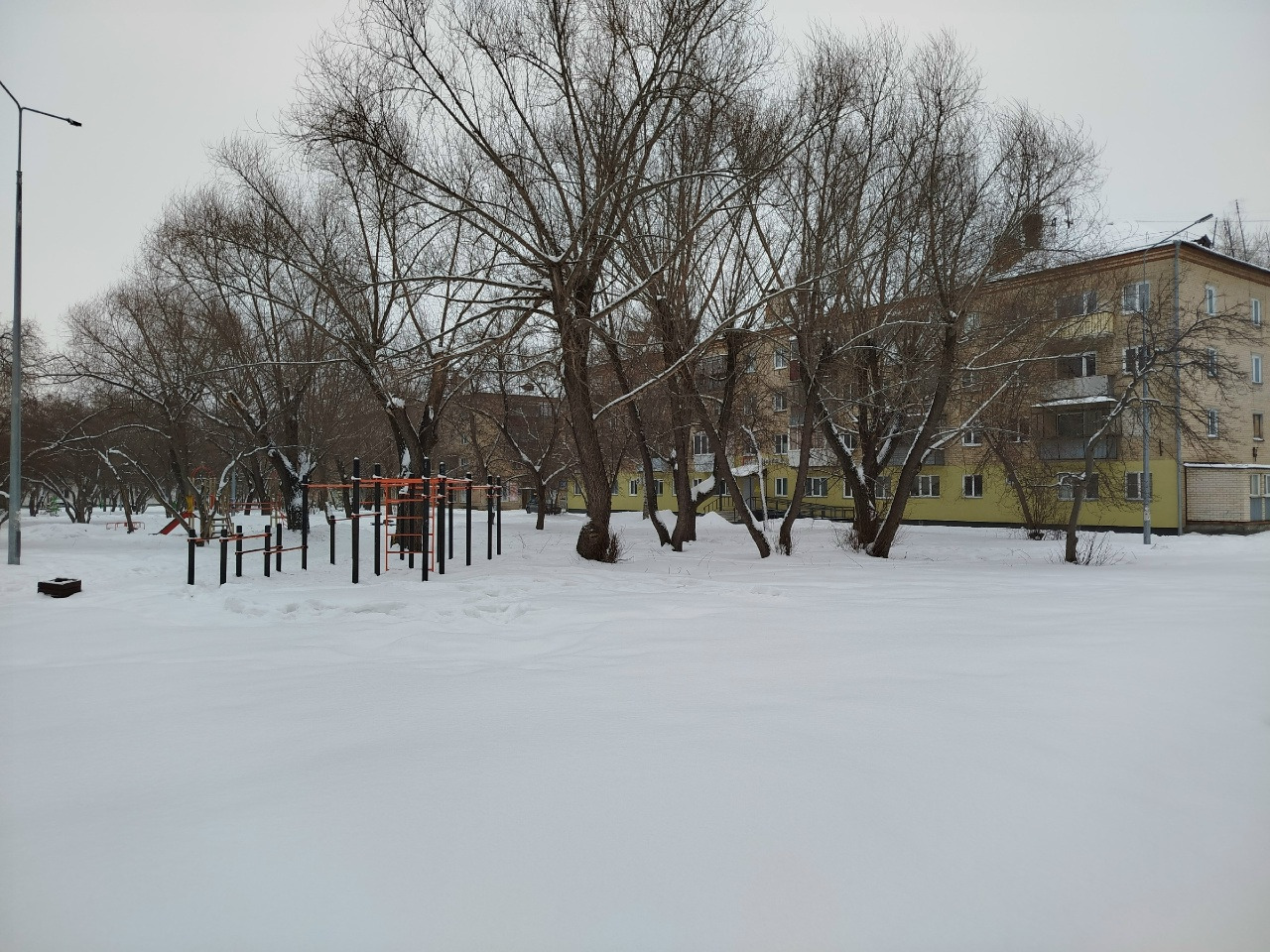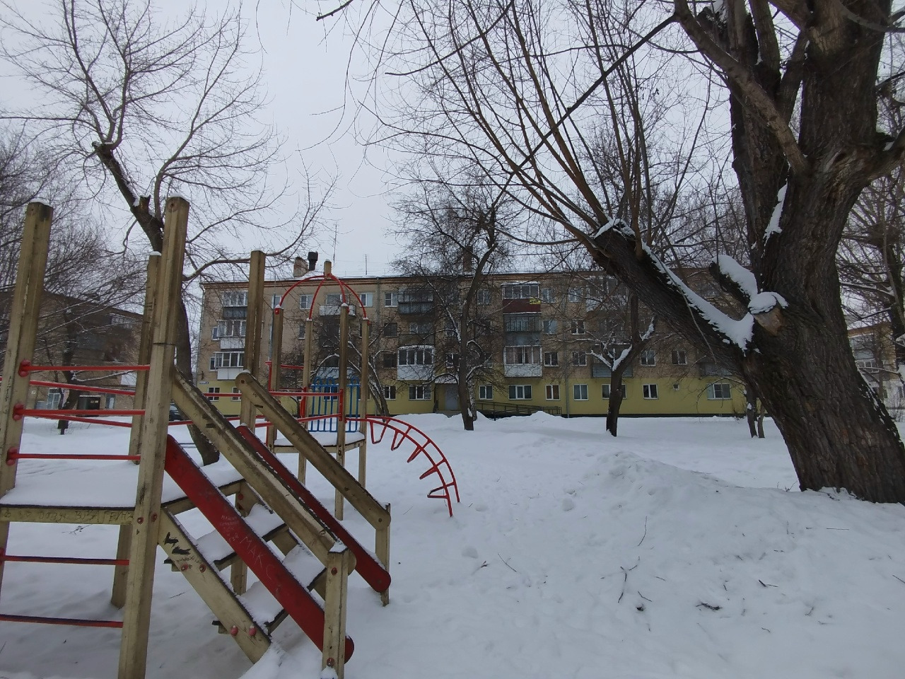 ? Спокойный зелёный двор с детской площадкой